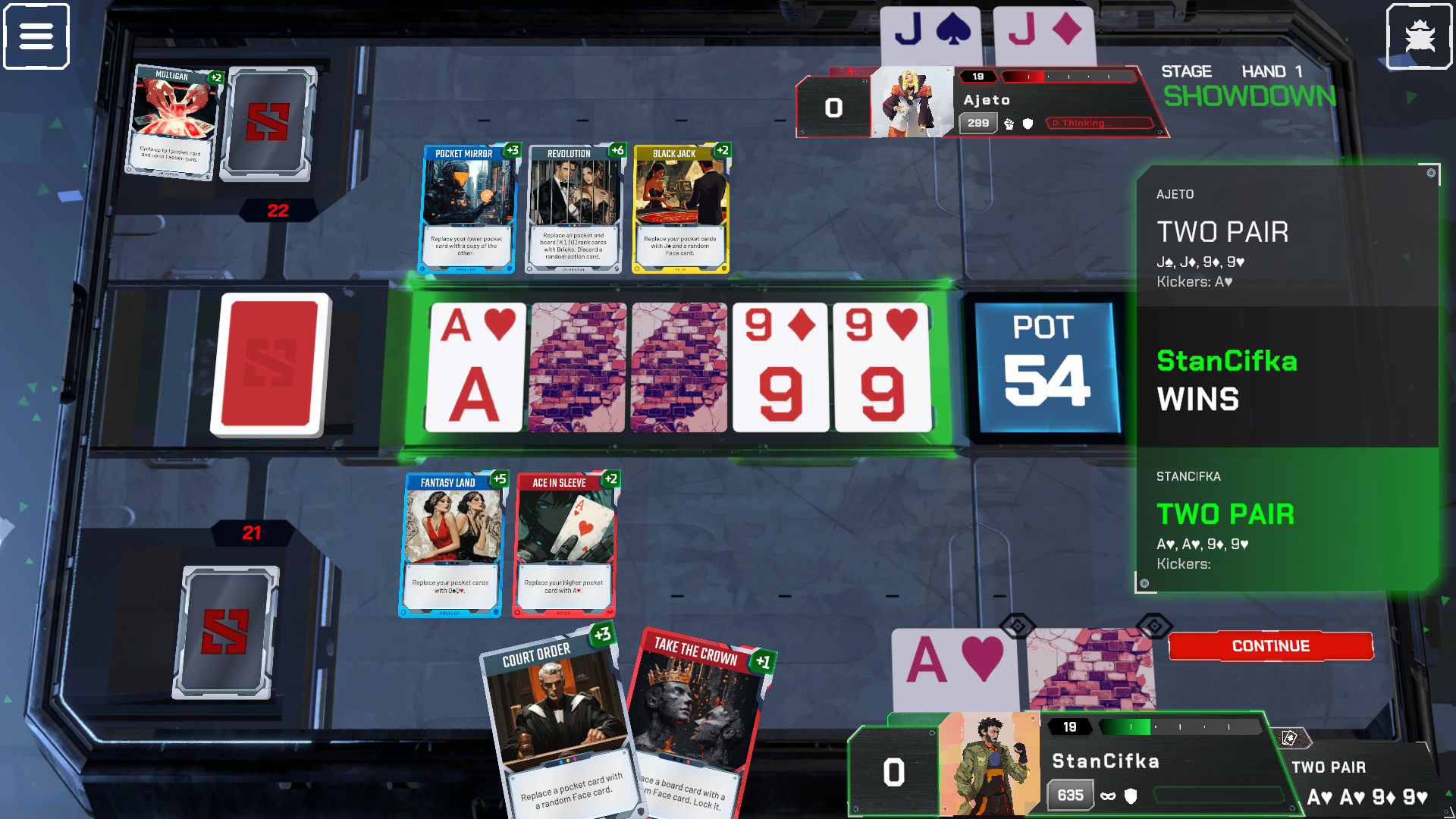 Online poker lost its magic. Showdown brings the soul back: 1v1, supercharged with action cards.